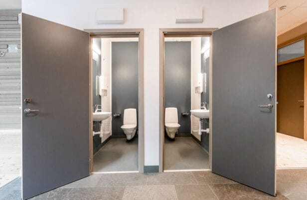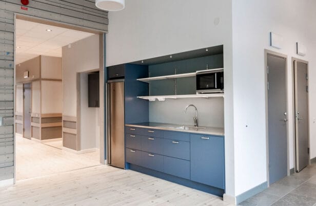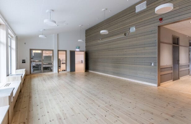 • Höga krav på akustik – perforerade skivor, snedställda väggar, vinklade glaspartier.