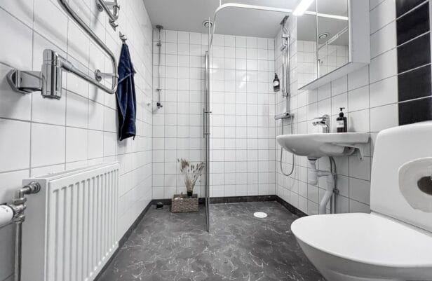Projektet omfattade totalrenovering av badrum och wc samt stambyte. Badrummen fick kaklade väggar, våtrumsmatta, nytt porslin, ny duschvägg och förbereddes för tvättmaskiner. Även värmesystemet byttes delvis ut. Under renoveringen bodde hyresgästerna kvar, så allt arbete utfördes med största hänsyn till de boende. Varje stam med tillhörande badrum tog 6 veckor att renovera och under den tiden hade hyresgästerna tillgång till en sanitetsvagn på gården.